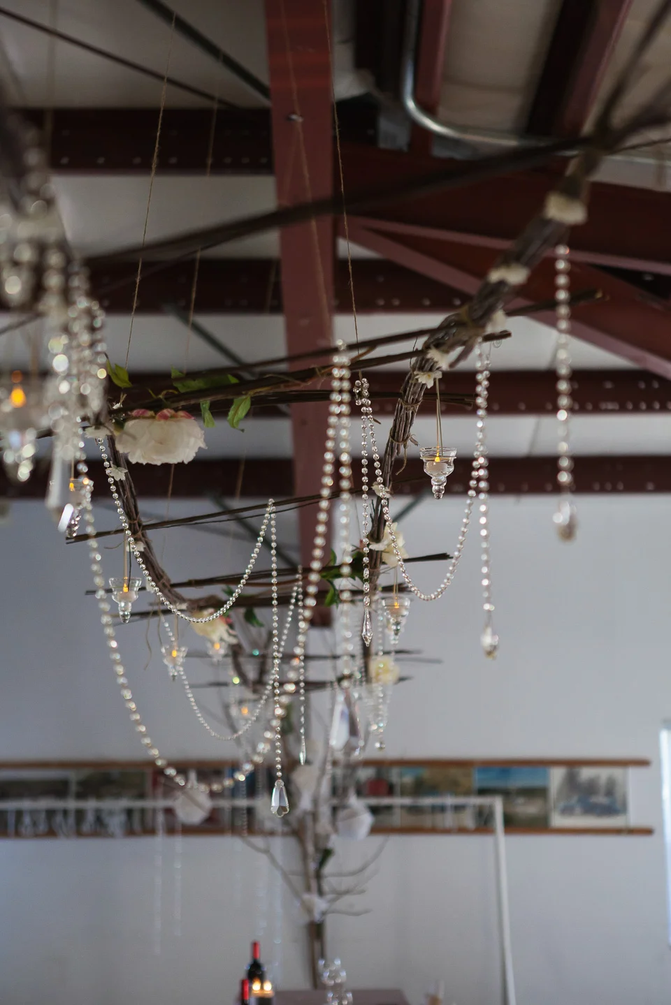 It was a warm fall day when we transformed the not-very-pretty Edmonton OTS into a stunning rustic/glam wedding for over 230 people. Decor & design by Ava Sophia Weddings, photos by Nicole Ashley, jam favours by the bride. The wedding involved an archway, aisle runner, entry decor, champagne overlays and sequin champagne tablecloths, custom-made centrepieces with real branches and silk flowers, lots of crystals, and a stunning ceiling treatment.